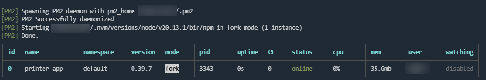 pm2 --name printer-app start npm -- start