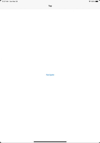 iPhoneと同じ動作にするときはnavigationViewStyleにStackNavigationViewStyleを指定します。