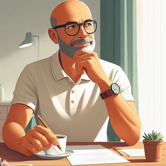 「デスクの上で考えている中年おじさん」by https://www.bing.com/create