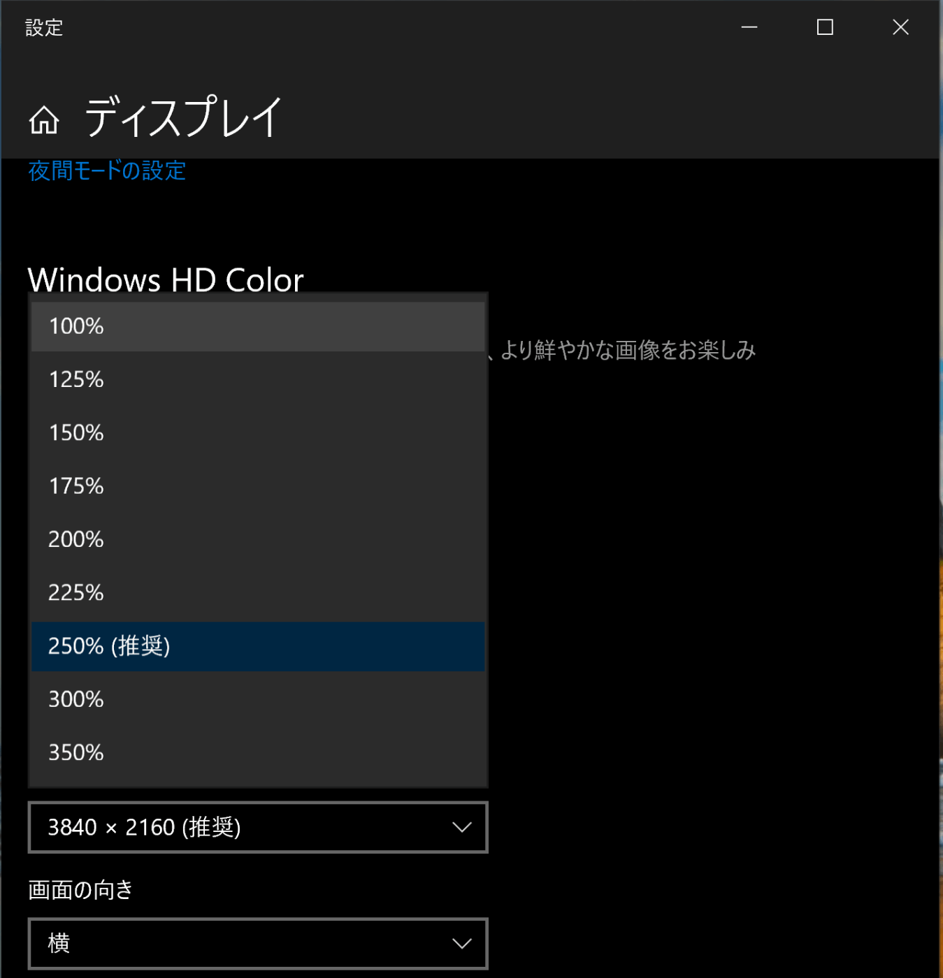 始めに、4K映像を受信して表示するので画面内に映像が収まるようにPCの解像度を変更します。
