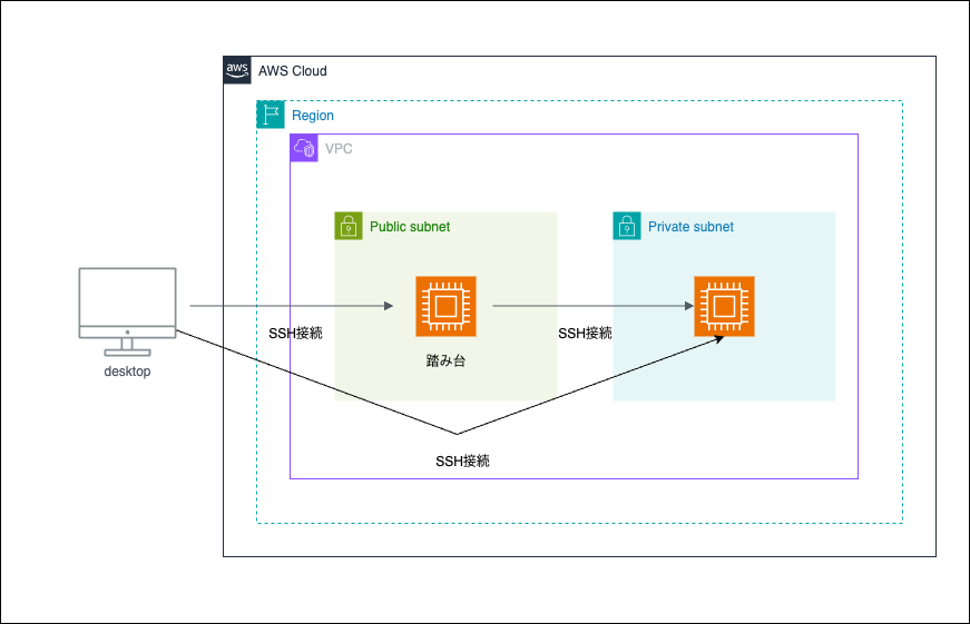 本記事ではAWS環境でのネットワーク構成において、パブリックサブネットとプライベートサブネット間で安全にアクセスするために踏み台サーバーを使用する手法を解説します。