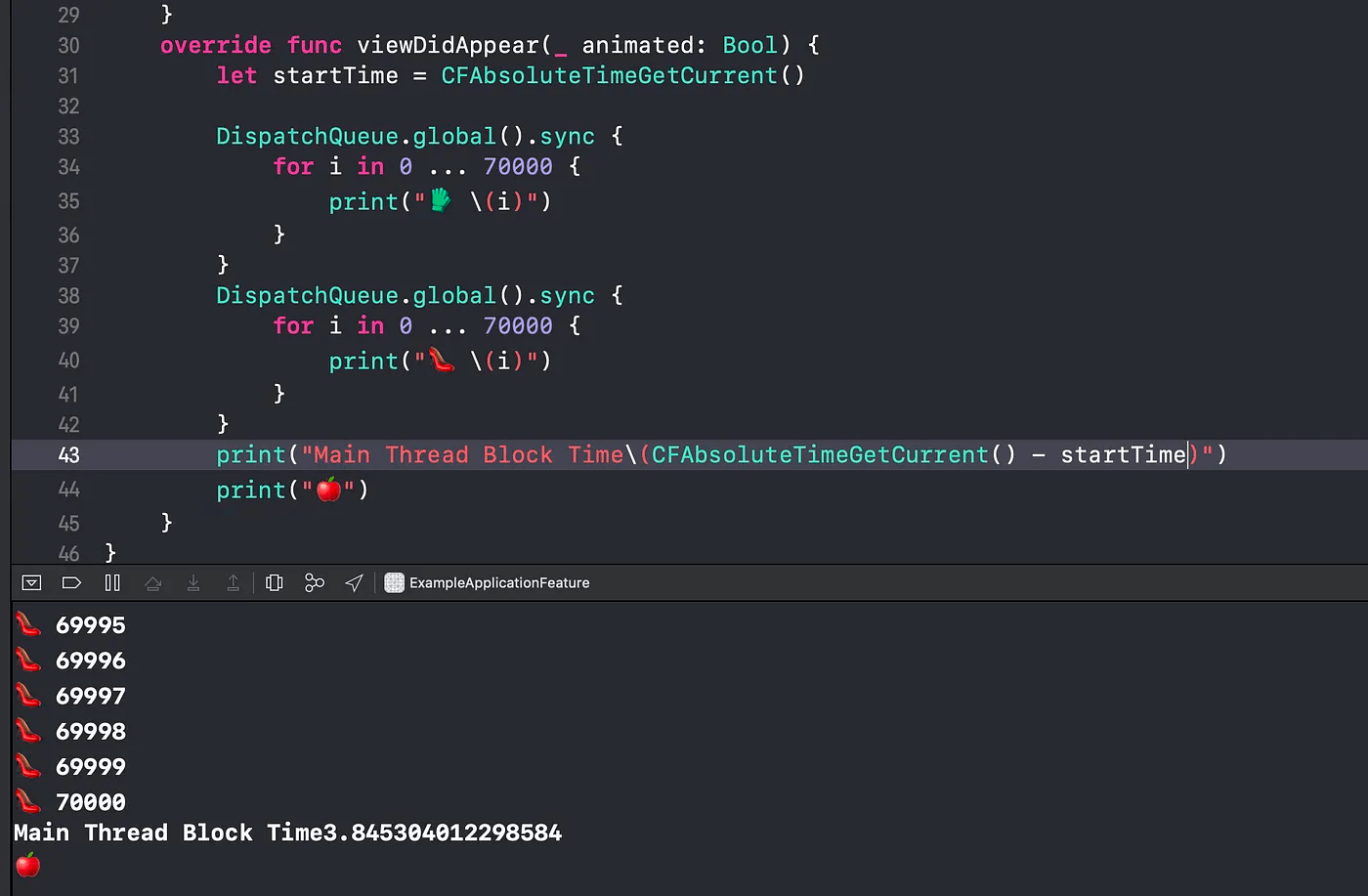 メイン・スレッドmainで同時実行グローバル・キュー同期をディスパッチしているため、
