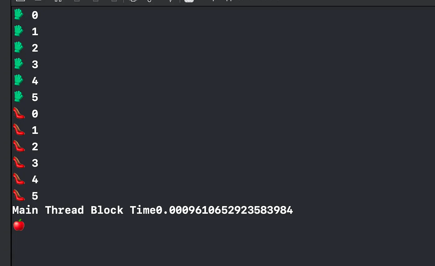 メイン・スレッドが最初に印刷を行います。また、これらはグローバルな同時実行キューなので、