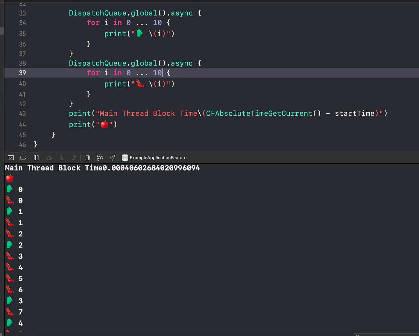注意:GCDに2つのタスクを渡した場合、同時実行か並列実行かは分かりません。