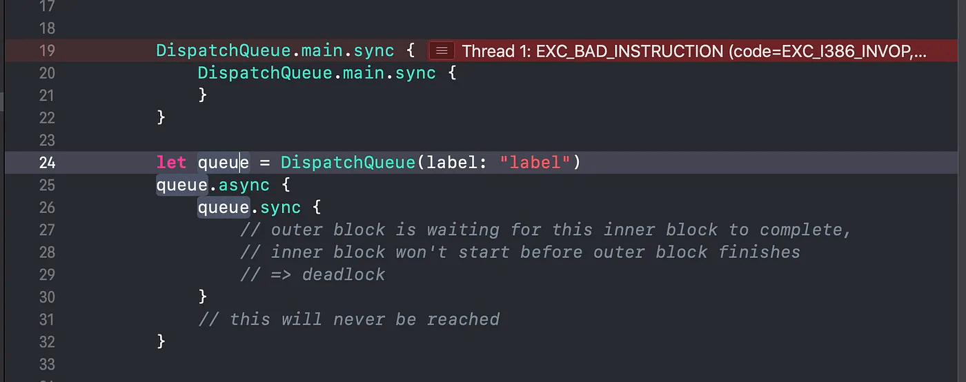 これは、デッドロックが保証されている直列キューでは特に重要ですが、並列キューでも避けるべきです。"