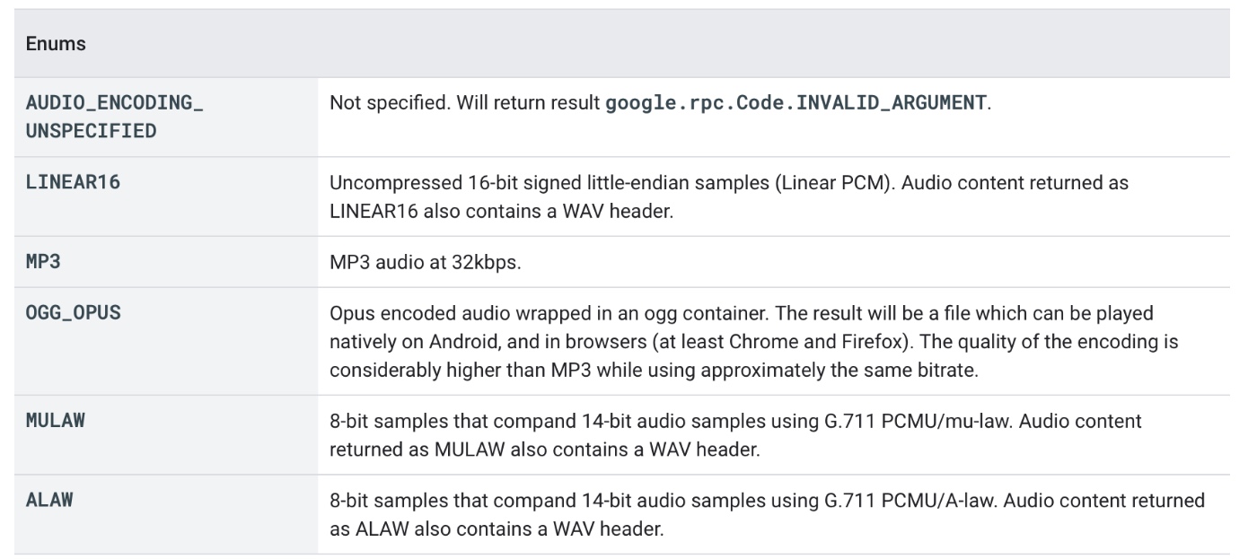 audioEncoding(required)