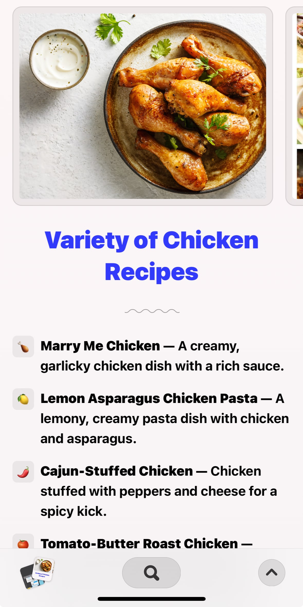「chicken recipe」と検索すると、こんな感じのページが出てきます。