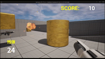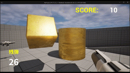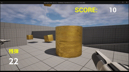 設定出来たらコンパイルして保存し、レベルエディタにうつってBP_TargetCylinderをレベルに配置しましょう。配置出来たらCylinderに攻撃してみましょう。