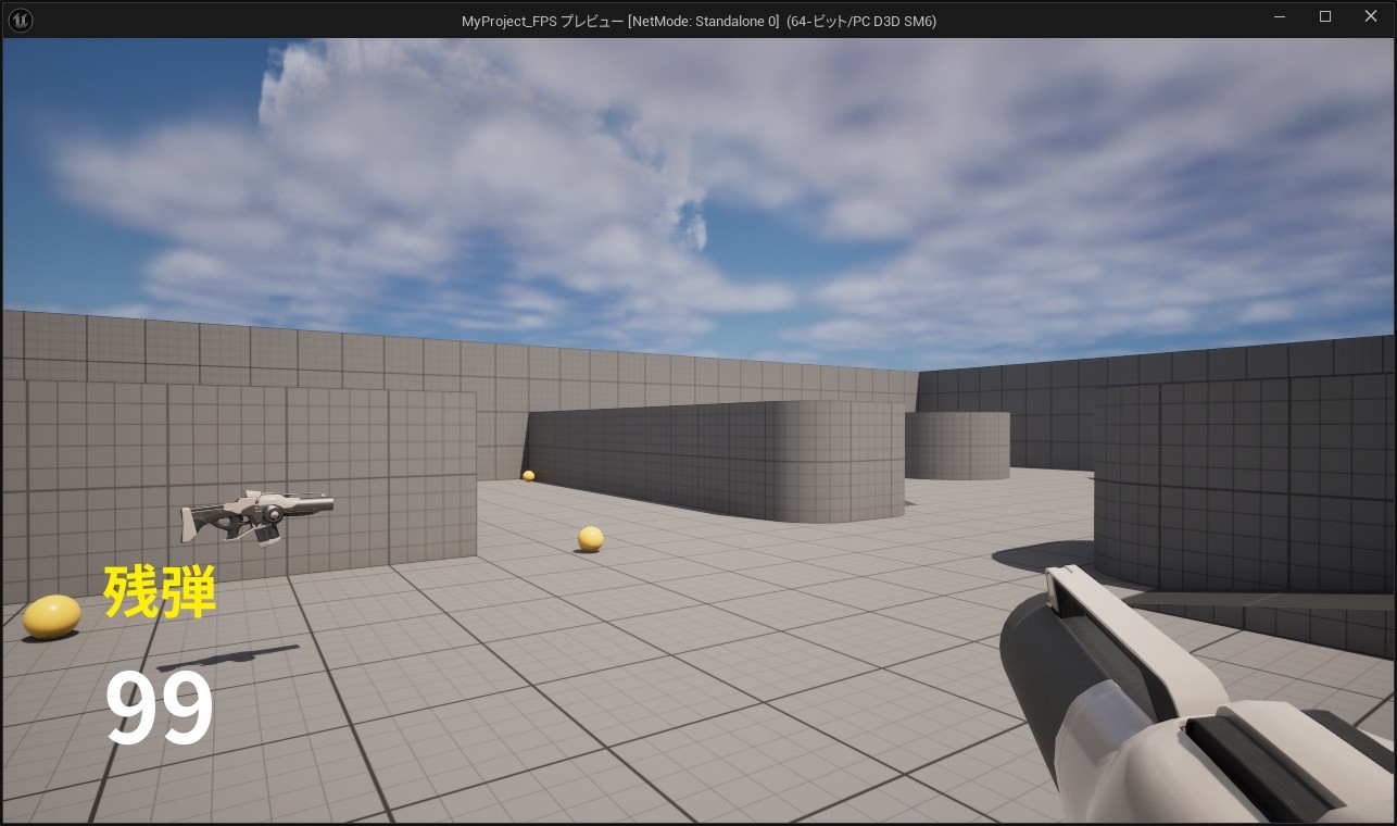 これでスタート時やリロード時の残弾表示が正しくなりました。UI表示の基本が学べたかと思います。次はスコアやライフ表示をやっていきたいと思います。