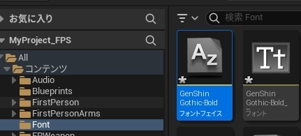 フォントファイルが用意出来たらコンテンツ直下にFontフォルダを作ってドラグアンドドロップしてインポートします。