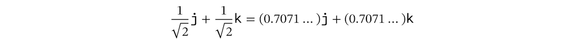 result = 0 + 0 i + 0.7071067811865475 j + 0.7071067811865476 k