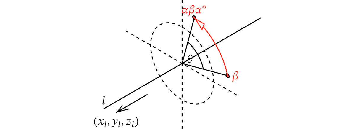 のまわりの角度l の回転を、次のノルムθ のクォータニオンであらわす。1