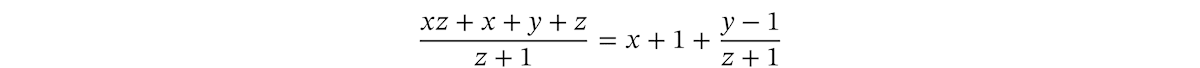 多項式の範囲では割り算は閉じた演算になっていないのですが、有理式まで拡張した範囲では割り算は閉じた演算になります。