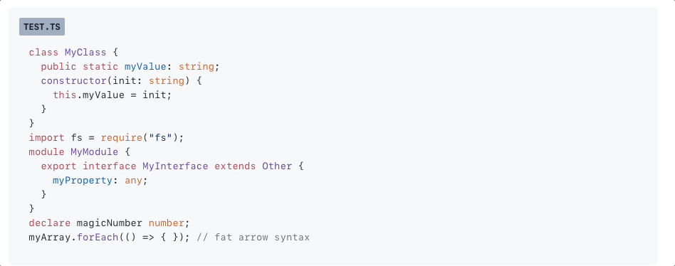 「```typescript:test.ts」のように記載すると、言語とファイル名を判定してコードブロックに反映してくれます。