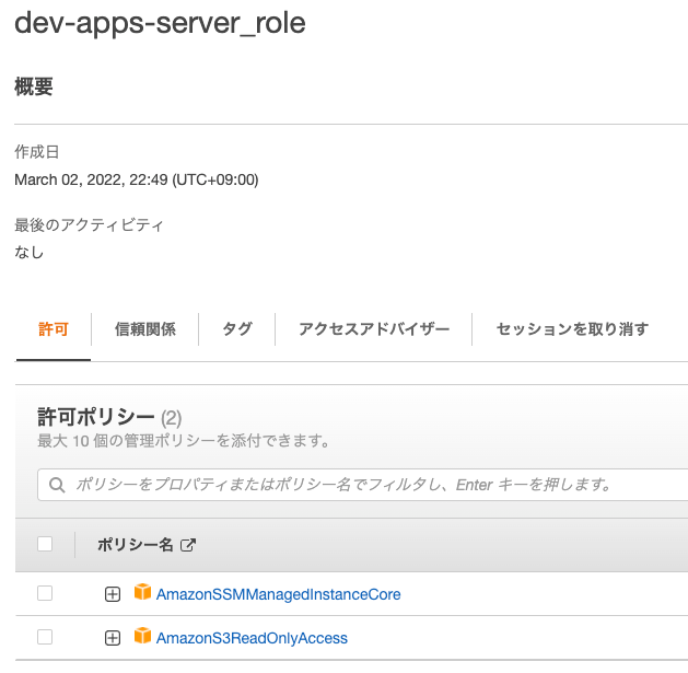 次はコンソールで「信頼関係」というタブで設定されているassume_roleですね。