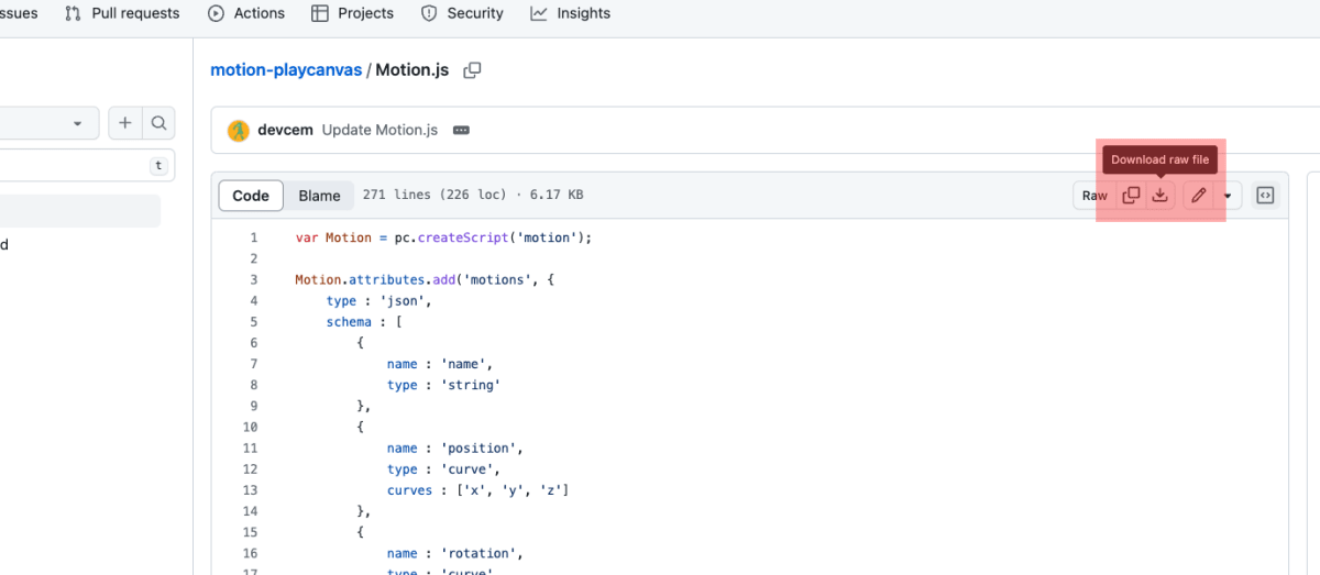 Motion.jsをPlayCanvasプロジェクトで使用するには、motion.jsファイルをプロジェクトに追加し、スクリプトに含めるだけです。