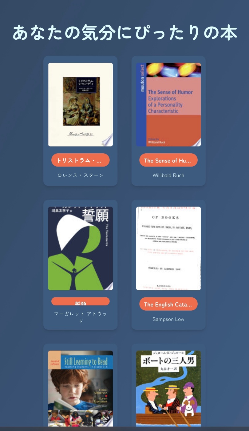 - Google Books API を活用し、気分に合わせた本を一覧表示