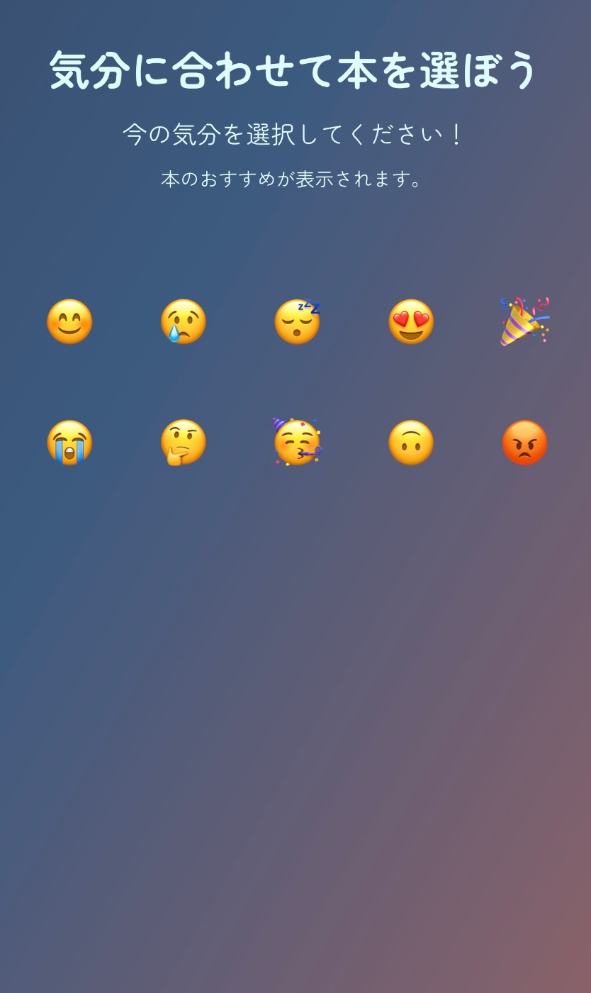 - Google Books API を使用して、選択した気分に合った本を一覧表示。