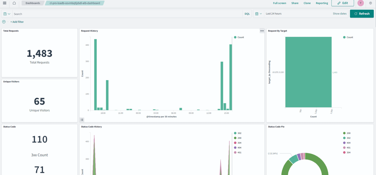 AWSサービスに応じたログ別のサンプルダッシュボードがありますのでログ毎の分析も容易に行なえます。