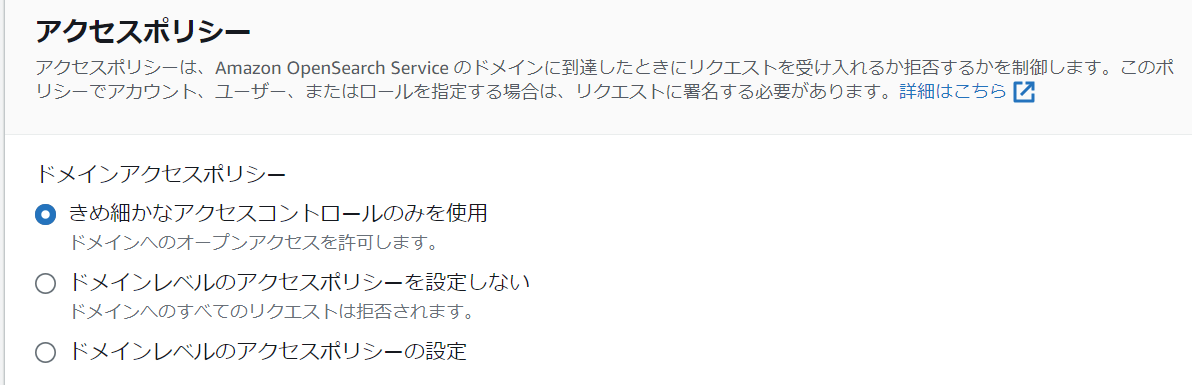 また後述のアクセスプロキシ経由でOpenSearchダッシュボードへアクセスする場合、カスタムドメインとSSL証明書が必要になります。