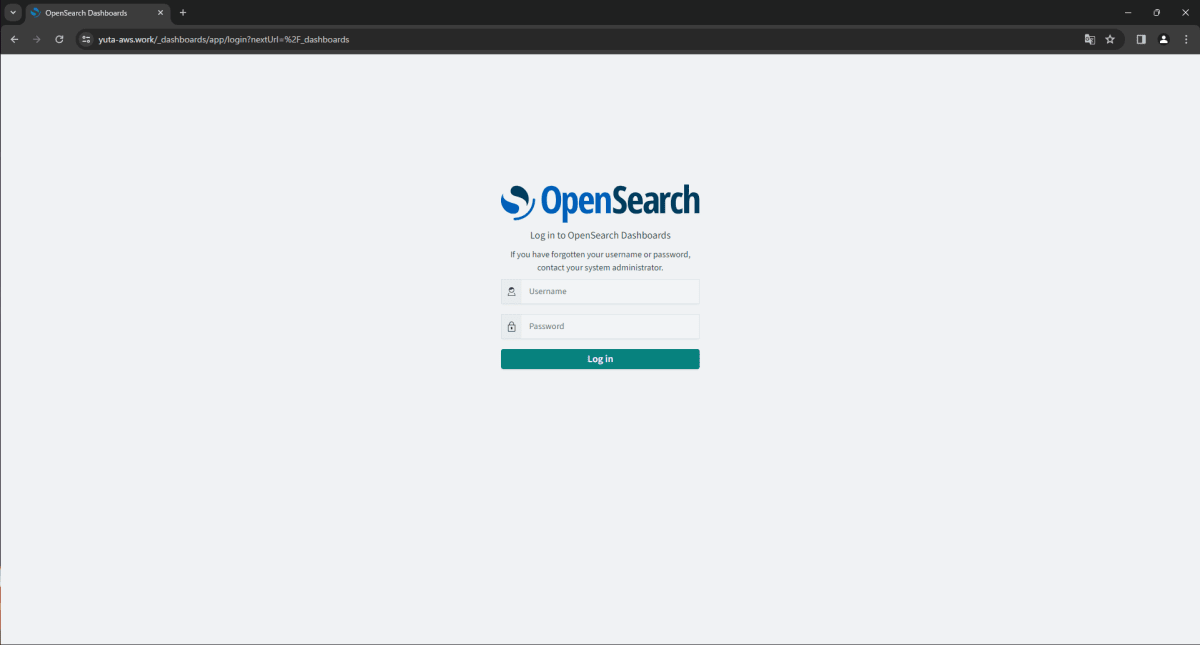 カスタムドメインでOpenSearchダッシュボードへアクセスできるようになります。