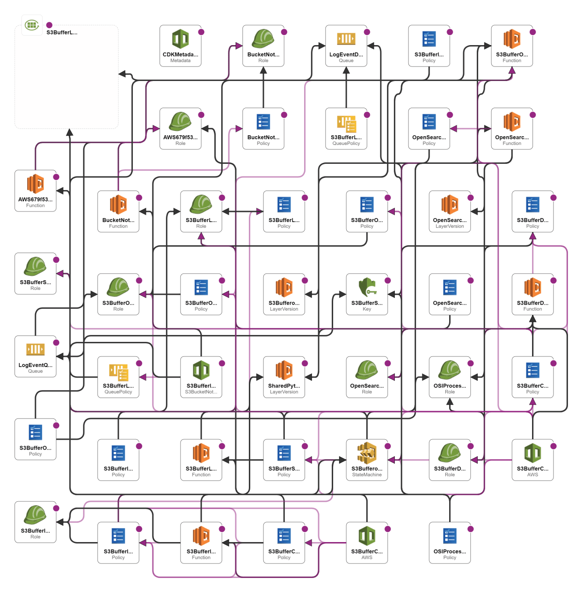 ログパイプラインの作成も裏でCloudFormationがデプロイされ、ログをOpenSearchへ転送するAWSリソースが作成されます。パイプライン作成時に設定をデフォルト値のまま進めましたらOpenSearchのサンプルダッシュボードもセットで作成されます。