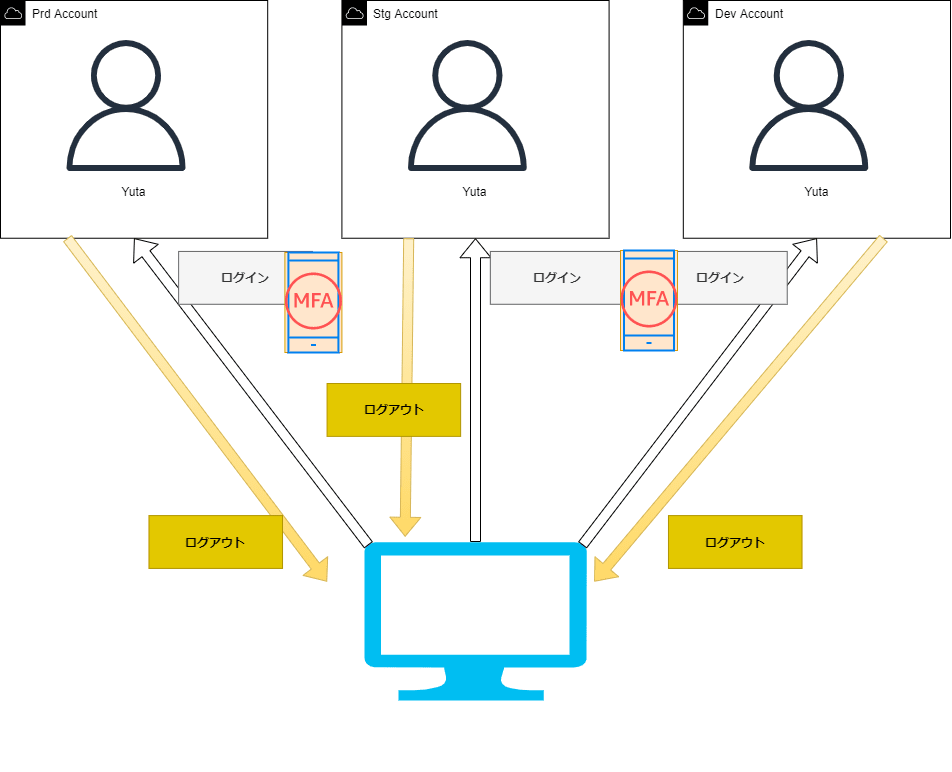さらにAWSのログインにMFA(multi-factor authentication)を必須とした場合、毎回自分のスマートフォンから、MFAアプリを起動してワンタイムパスワードを入力するという手間が生じます。