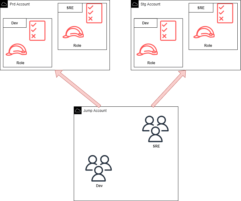 ただそうなるとエンジニアの数が増えるとIAMロールの数が増え、アカウントごとに管理するということになるとクロスアカウントアクセスの意味がないような気がします🤔