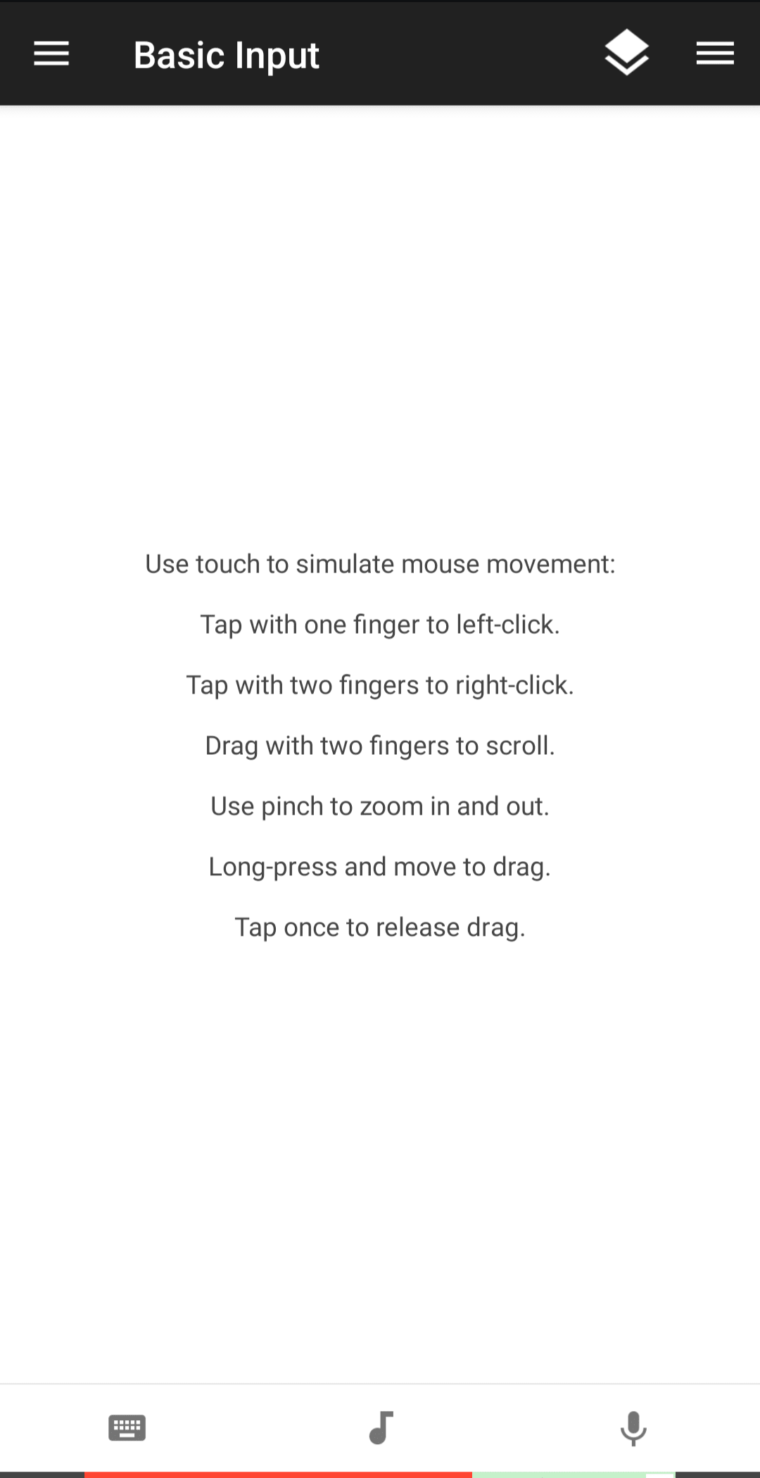 Basic Inputがマウス操作になります。1タップで左クリックしたことになりますのでスマホからスライドページを次に移動できます。ただこれでは戻るができないので誤タップした場合スマホからでは戻せない問題があります。広告なしの有料版を購入すれば仮想キーボードを使え、矢印キー操作ができます。