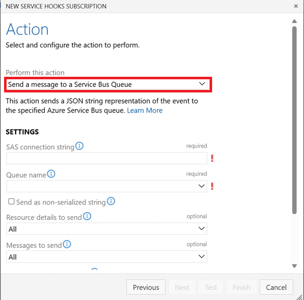 - Service Hooksが、Azure Service Bus のキュー/トピックにメッセージを投げる