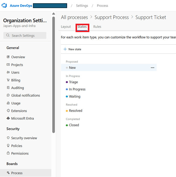 - Azure Boardsの カスタムプロセス で「Support Ticket」ワークアイテムを設計する