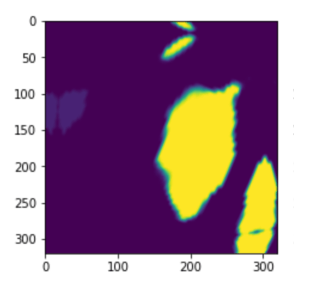 ・Example of one slice of a single vertebrae, and its predicted mask (with augmentations).