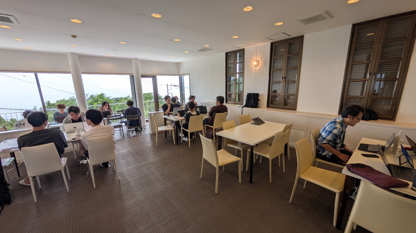 今年のハッカソンは熱海で海が丸見えの最高の会場でした。こういうとき私の暇っぷりがすごい