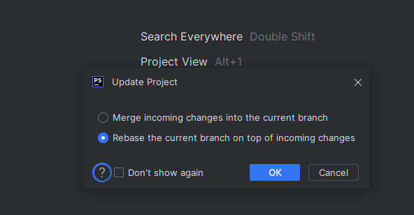 ✨【PhpStorm Merge/Rebase】Update Projectを再表示【git pull】2024/01/11に公開GitPhpStormIntelliJrebasemergetech Settingsから変更できます。マージコミット作りたくないのでいつもRebase選んじゃってます... https://www.jetbrains.com/help/phpstorm/2023.2/sync-with-a-remote-repository.html#update Discussion