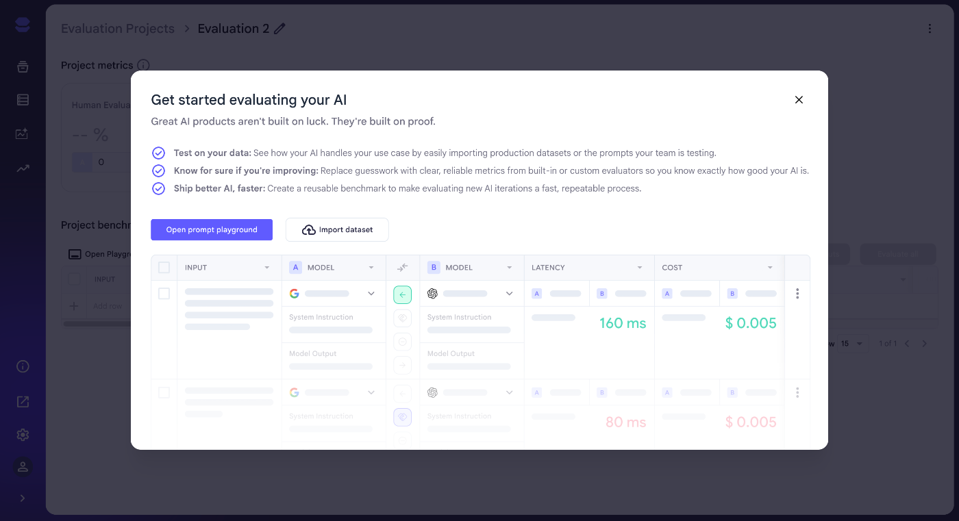 単一のモデルまたはシステムプロンプトの性能をデータセットに対して評価するために使用。 -