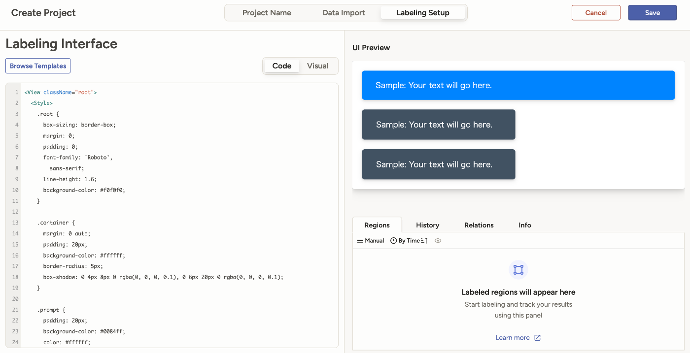 Side-by-Side評価以外にもテンプレートが多数用意されているので、用途に合ったアノテーション環境を簡単に用意できるのがよいなと思いました。