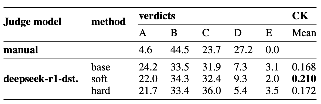 ex.「より詳細な情報を提供している」という理由でモデルAが優れていると判断した数が 14 でモデルB(6)より多い, 「正確で明確」という理由でモデルAが優れていると判断した数が 2 でモデルB(4)より少ない ↩︎
