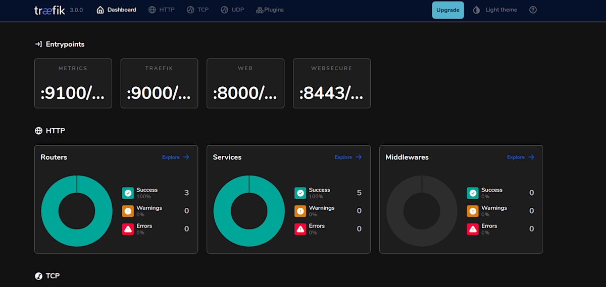 でダッシュボードにアクセスできます。ダッシュボードでは router や service の状態, 有効化されている provider の情報などの構成情報を視覚的に確認できます。