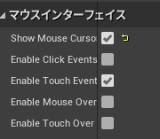 UE4では実行時にマウスカーソルが非表示になるのが標準設定になっています。