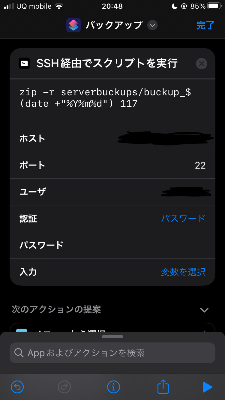 iPhoneのSSH経由でスクリプトを実行でマイクラサーバーのバックアップを自動的に行う