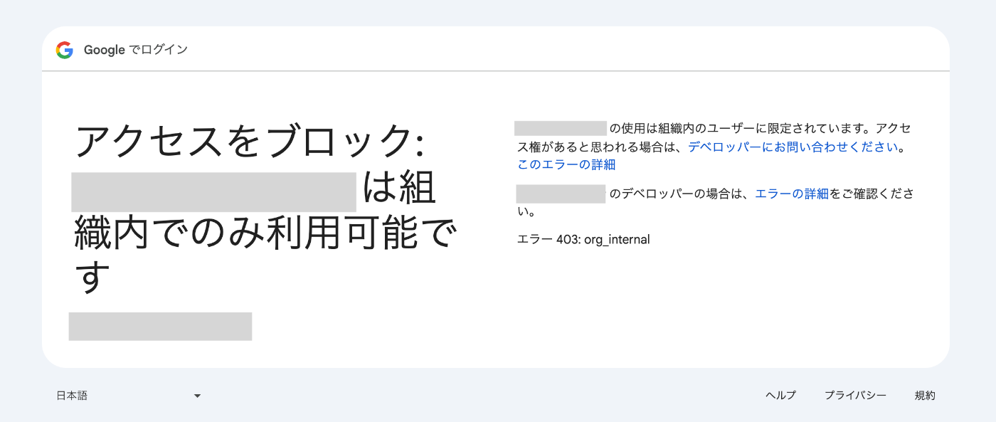 許可されていないメールアドレスでログインを試みると、403 Forbidden エラーが表示されます。
