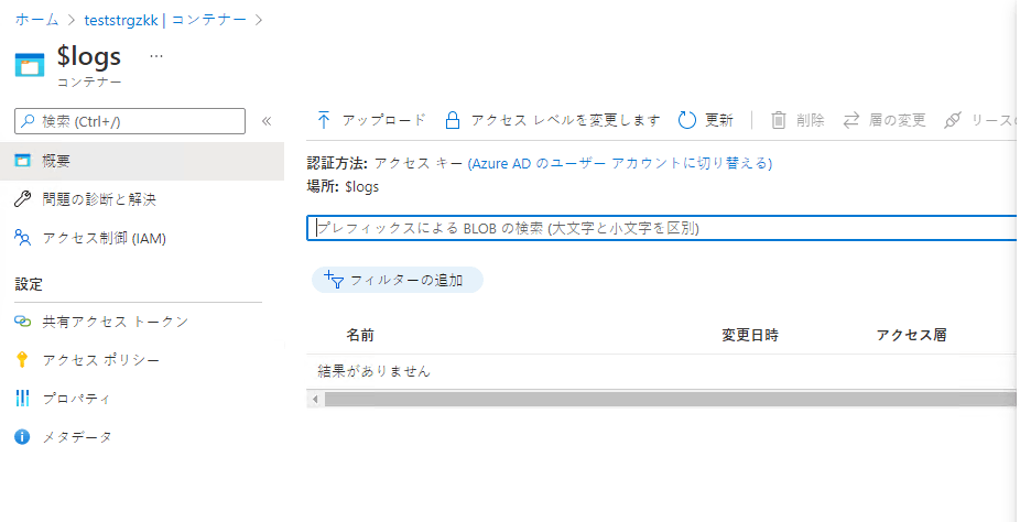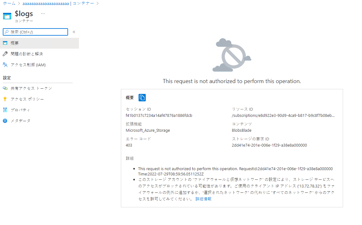 その他のストレージアカウント⇒コンテナ内部アクセス不可