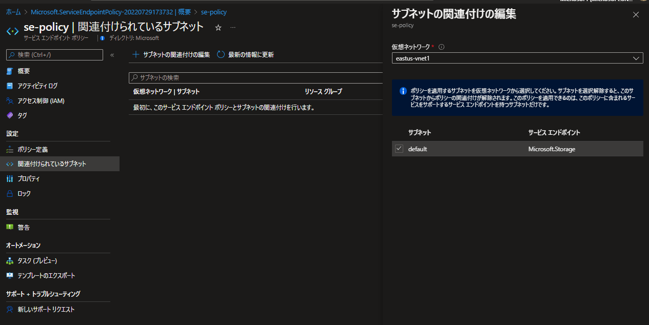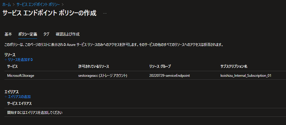 サービスエンドポイントポリシーの設定