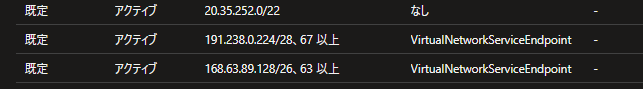 - EastUSのストレージアカウントとペアリージョンのWestUSのストレージアカウントのパブリックIPに対してのルールがNexthopをVirtualNetworkServiceEndpoinにする形で追加される